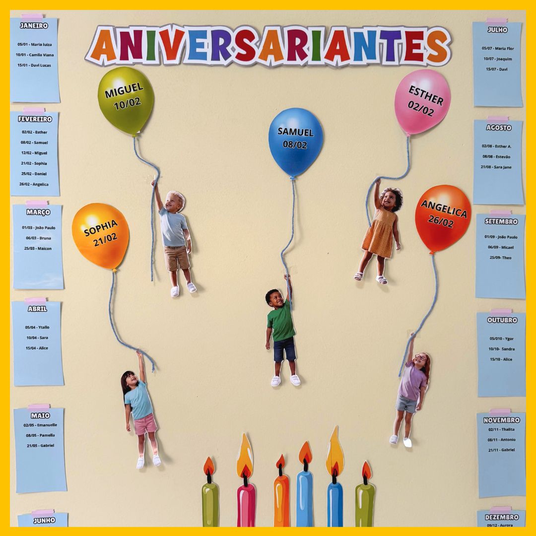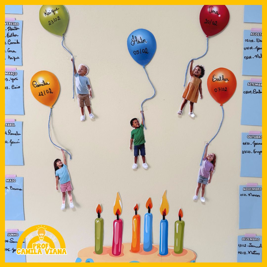 – BALÕES PARA ESCREVER OS NOMES E DATAS DOS ANIVERSARIANTES.